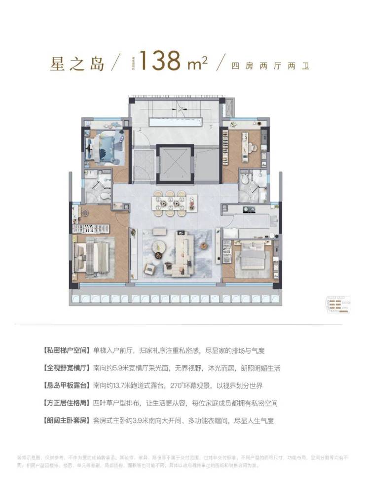 在景观设计上,海屿佘山项目致力于打造一个融合酒店美学的度假风格社区。为此,项目采用了半环抱式的结构设计,确保每一栋建筑都能享受到绝佳的视野,完美诠释了“一心双轴,双庭四境”的设计理念。此外,项目还融入了价值不菲的乌桕林景观和约600平方米的空中庭院等精致元素。整个社区几乎实现了每一户都能观赏到美景,每一层都拥有充足自然光照的高品质度假生活体验。