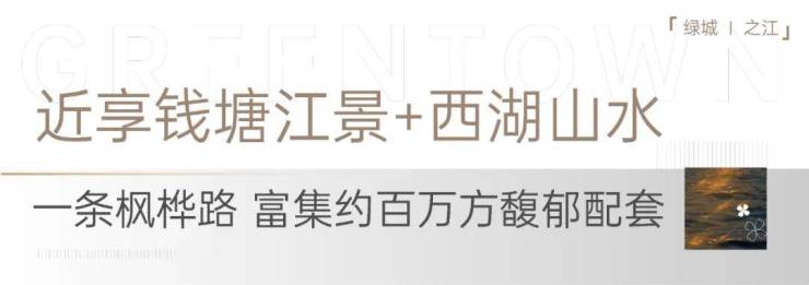 深耕30年,钱塘江两岸多项目开发经验,2025绿城沿江新作,定制级精装标准;