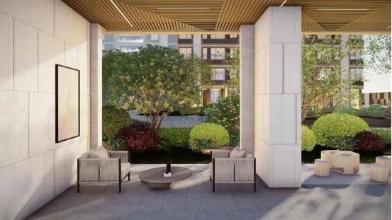 以“九曲映翠”的空间主题及曲线洄游动线,串联起“|通过“艺术前场、迎宾水景、邻里客厅、共享客厅、四季识园、无界社交空间、儿童大象乐园、绿意游道、元气交流空间”九大功能空间,构建一系列高品质景观场景,让关于理想生活的想象一一上演。