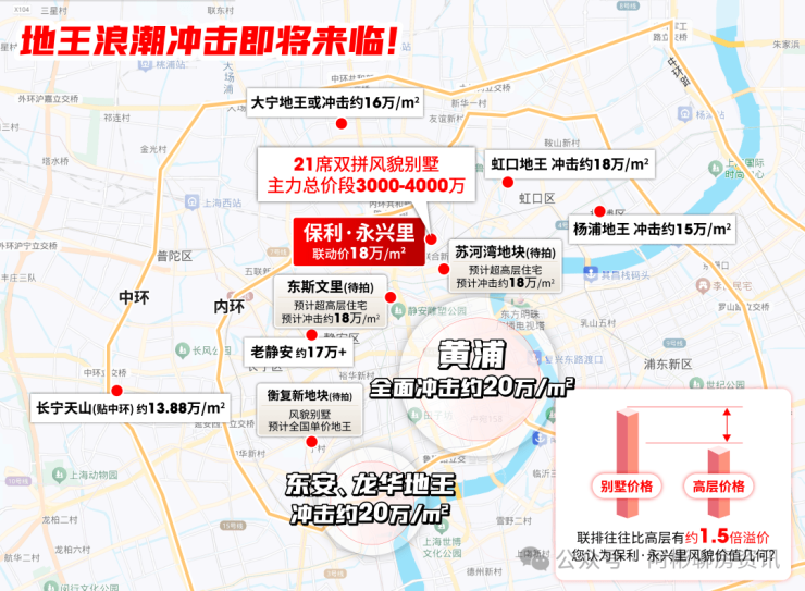 前文讲过全上海新盘价格在持续上涨,部分高层甚至超高层的价格已经逼近或超过了保利·永兴里风貌别墅约18万/m²的单价,这其中的“倒挂”令人瞠目结舌