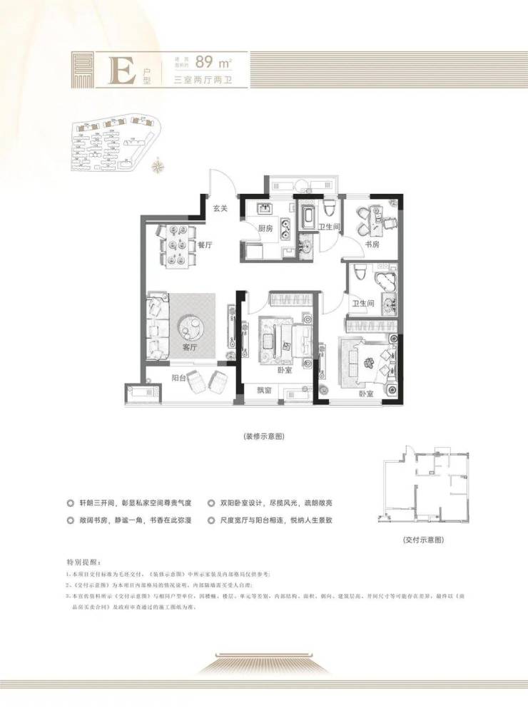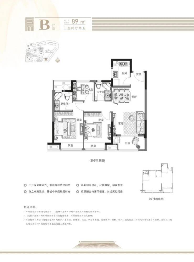 雅致三居,尽享温馨:89平米起,巧妙布局的三房两厅两卫,空间利用最大化,既满足现代家庭的居住需求,又不失生活的格调与品质。
