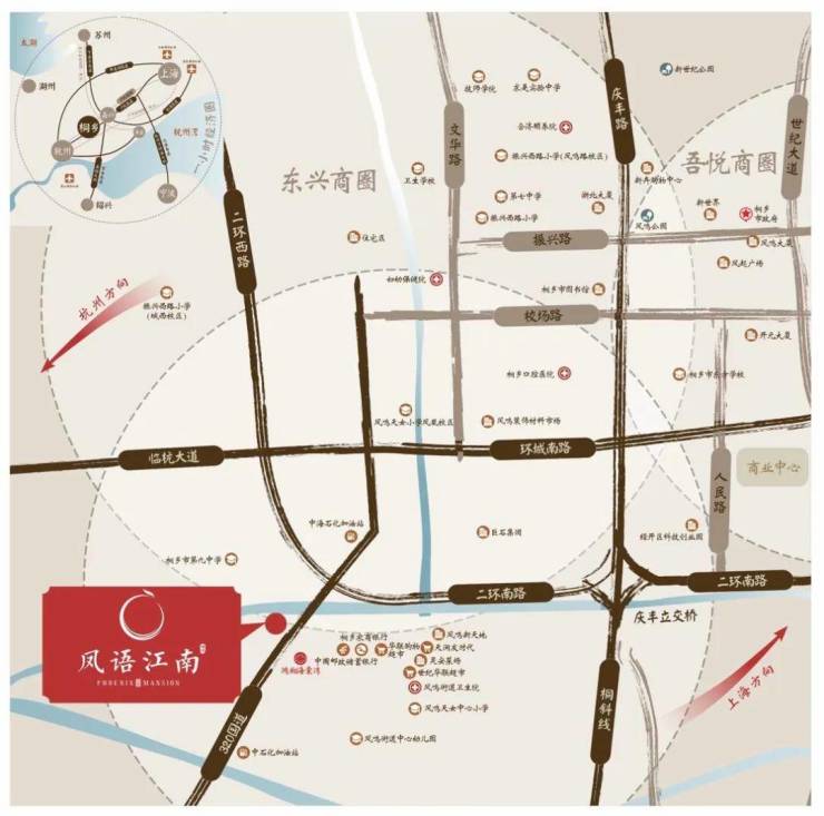 【区位优势】鸿翔·凤语江南傲立于桐乡这座杭州都市圈内的璀璨明珠之上,地处沪、杭、苏金三角的核心区域,经济活力四射,已迈入千亿级城市的行列。项目依托沪昆高速等四通八达的交通网络,轻松融入大都市生活圈,同时近享新320国道扩建带来的交通便捷,未来更将享受区域内交通发展的红利。