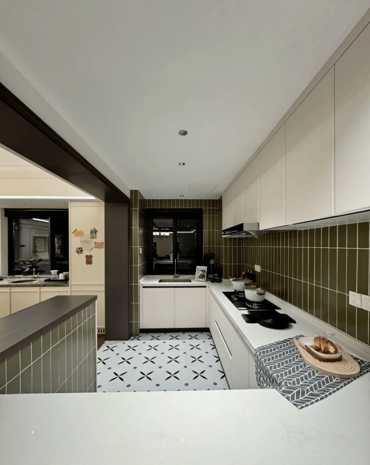 •大气轻奢的门厅:大理石背景墙与金属线条元素搭配,营造出复古优雅的氛围