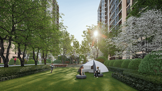 洋房:106㎡(2+1室2厅2卫)、125㎡(3+1室2厅2卫),大横厅设计,四开间朝南,主卧套房配置,部分洋房一楼带庭院。