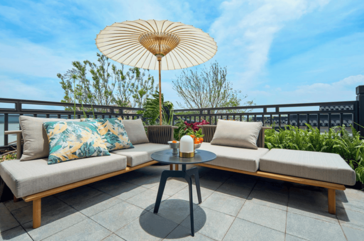 当你来到露台上,看到的是这个图景,可以边品茗,边欣赏满眼的景致。