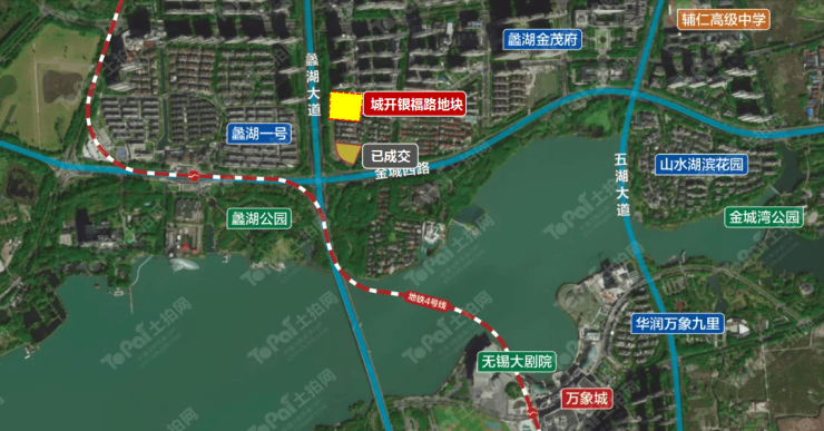 项目位于滨湖区蠡湖大道与银福路交叉口东南侧,占地面积约9574.8㎡,规划为居住用地,容积率1.5,于2021年11月成交,总价26580万元,折合楼面单价18507元/㎡。