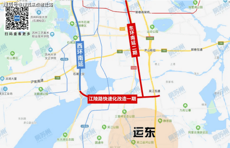 板块正处于“新内环“黄金走廊上的黄金位置,东环南延的贯通,实现了快速与园区的接驳;江陵西路高架(在建),西侧通过松陵大桥与西环南延、苏州湾大桥相连,快速打通运东与苏州湾、新区、姑苏区的交通壁垒,无缝对接苏州各大区域。