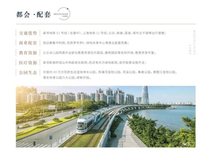 交通配套:距离S1号线(在建中)展览中心站约800米,与上海地铁11号线在花桥站同站换乘;临近城市主干路(东城大道与绿地大道);多条公交线路可以直达花桥地铁站和花桥全区、昆山市区,绿色出行,方便老幼;轨交、高速、国道、城市主干道等立体交通网络覆盖,轻松畅达上海、昆山及苏州市区,近享都会全维生活。