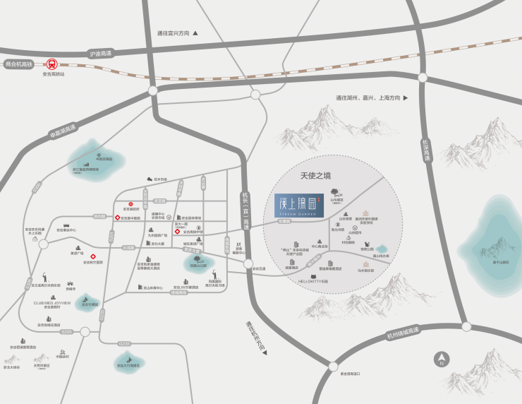 项目距杭长高速口仅约1.5公里,从杭长高速入口出发,约半小时抵达杭州;申嘉湖高速安吉段已全线通车,安吉到湖州、上海更加便捷;