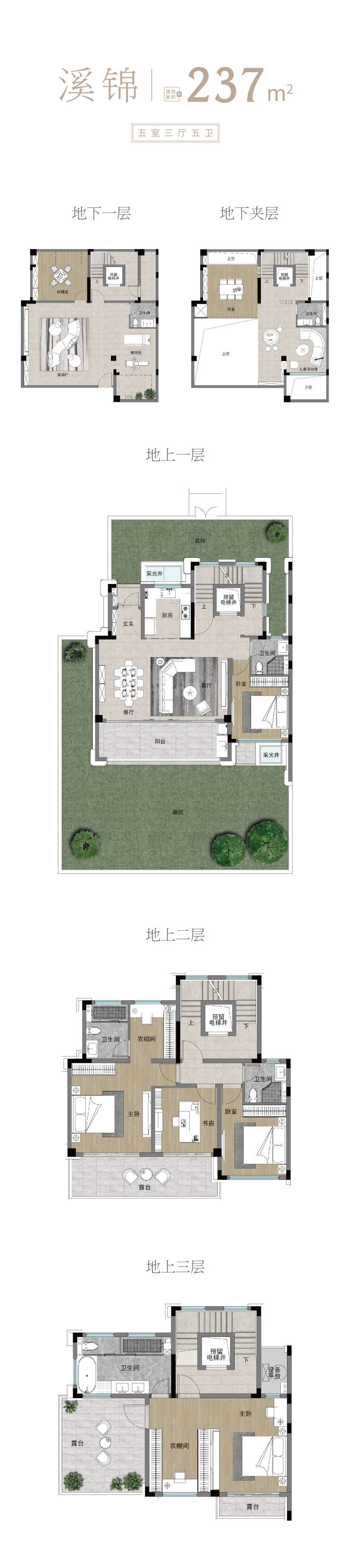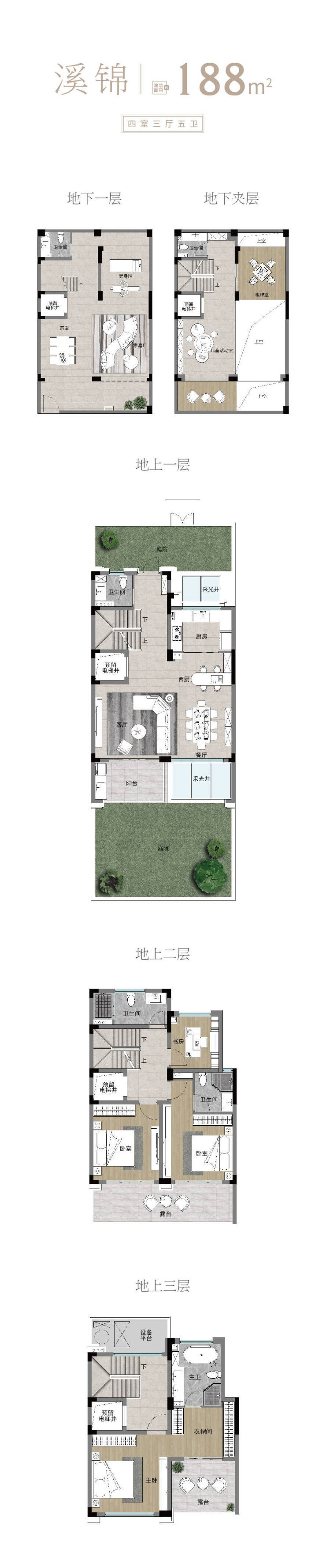 地下挑高:部分挑高地下室,可两层设计,打造多功能私享休闲空间;