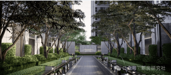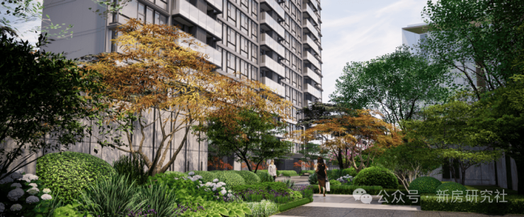 整体效果现代精致,十分符合当下年轻人的审美观;星级酒店式入户门,挑高约7米,宽约60米;石材金属线条背景墙加暖色系夜灯搭配,中庭花园水岛层叠、景墙错落,槭树青红间季节流转的温情脉脉展现,精致的水景让居住者仿若初入剧宴,感受剧目的艺术呈现……