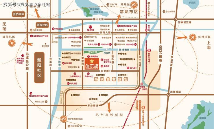 地段绝佳,政府重点打造高铁北城,G524、苏虞张一级公路并线纵穿,立体交通发达,执掌八方财路,便捷接引沿线消费群。