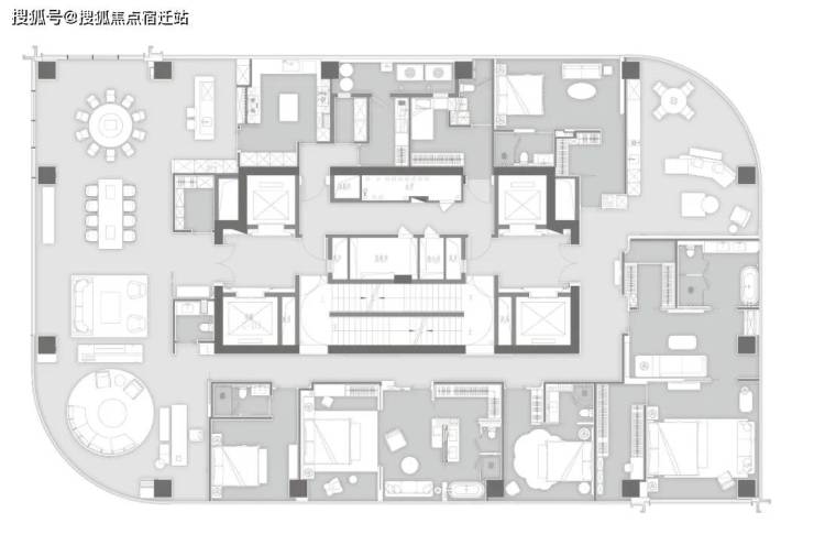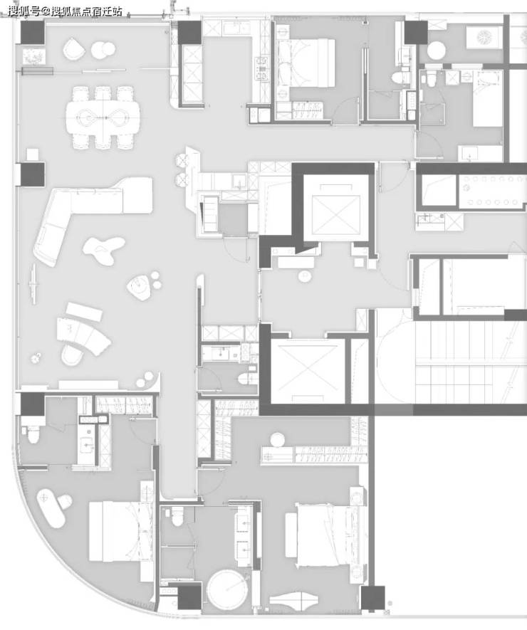 该户型由香港 CCD 郑中设计事务所郑忠老师设计,为5房2 厅5卫带保姆间、阳台的四套房设计。