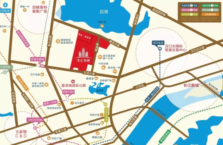 天汇龙城位于盘龙大道以东、巨龙大道以北,在楼市中属于盘龙城板块,行政划分属于黄陂,环线位置属于三环外。