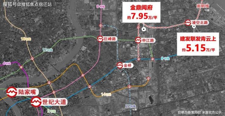 金鼎天地配套住宅金鼎阅府,新房备案价格7.95万/㎡,且实际上更靠近崇明线宝高路站点,和「建发联发青云上」实际上就一个站的距离。「建发联发青云上」联动价仅5.15万/㎡!1站轨交,新房价格差2.8万/㎡!一套100㎡的房子,总价差约280万!