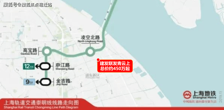 崇明线已经在建,预计2027年建成通车(来源:上海发布)。届时从凌空北路站2站即可到达申江路站,换乘12号线;3站到达金吉路站,可换乘9号线。
