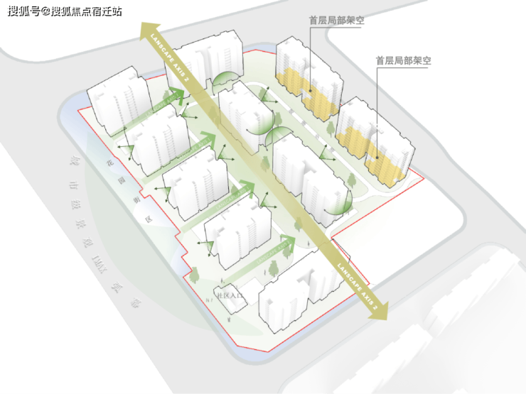 项目东侧大尺度退界,对城市开敞,建筑窄面对城市道路,让更多小区景观与城市交融。项目内部最大限度地利用土地资源,为居民提供了充足的公共空间。