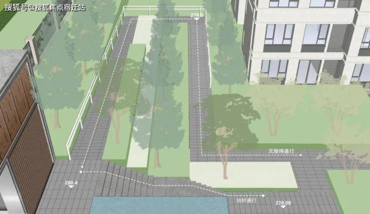 归家园路采用“见阶见坡”的策略,满足整体无障碍的实现,将老人的独自出行化为轻松的旋律,让妈妈与婴儿车里孩童的出游充满安心与愉悦;台阶侧面的坡道隐于一片静谧的水杉林中,满足无障碍需求的同时,缓解硬质通道对低层住户的不利影响。