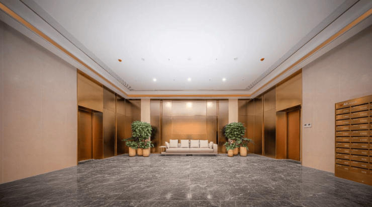 更让人羡慕的是地库的升级,延续了越秀一贯的精工水准,地下车库从观感、质感到体验感都全面做了品质提升,升标打造的全水磨石地面,线性灯带亮化空间,夜光防撞护角细节入微,汽车坡道璀璨星空顶,宛如满天星倾泻而下,完全是星级酒店的质感。