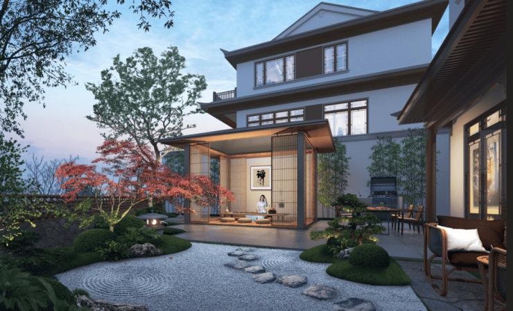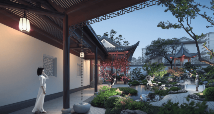 在园林设计上,鸿和·紫香缘汲取唐代诗人王维的造园巧思,以“引画入园·九境九感"“为构园蓝本,将多重生活场景融入园林布局,实现“情”与“境”的交融与提升,步履之间尽享文化内涵和自然风光。