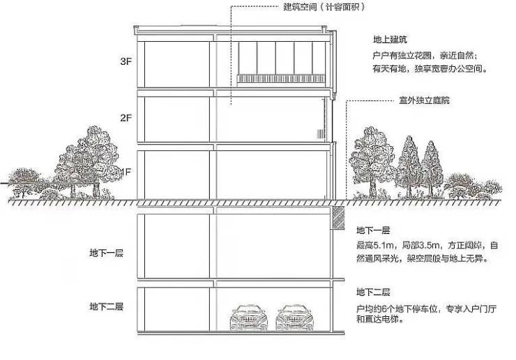 西溪印附送超大地下使用空间,地下一层约5.1米层
