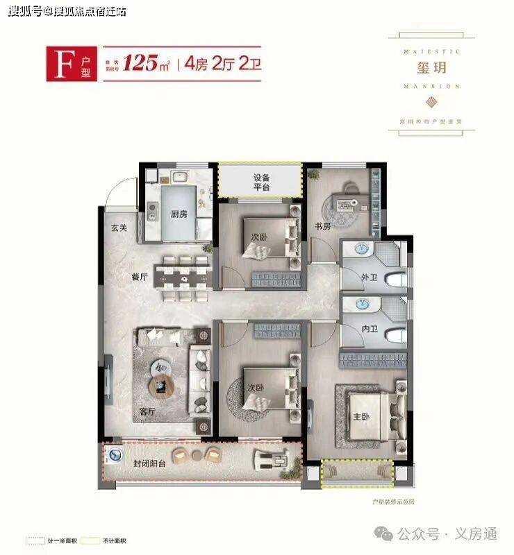 奢华四房:户型全明方正,动静分区,精湛空间布局