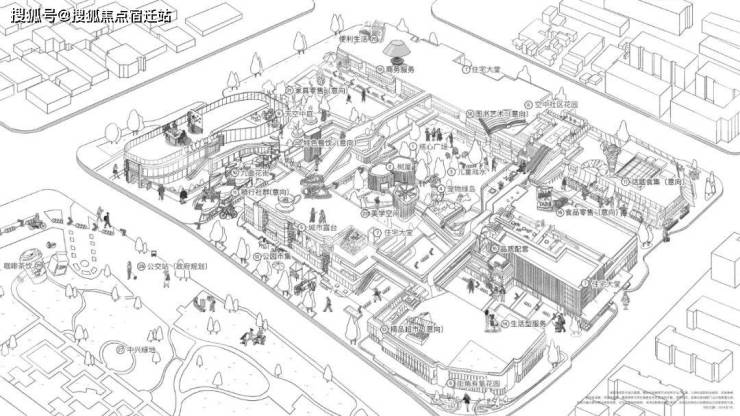 活力场景动画演绎,食集业态暂定,具体以实际规划为准
