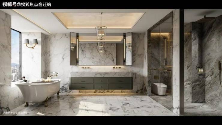外立面大量采用弧形工艺,包括转角玻璃阳台、弧形铝板、墙面线条和大门线条等,致敬了邬达克装饰艺术派的设计美学,同时,约270度转角弧形玻璃也是基于人的需求考虑,能够让空间内部视野最大化,方便住户(部分户型)更好的捕捉璀璨夜景。(因建筑方位、周边规划等因素可能导致户外景观视野存在遮挡,效果以实际为准。)