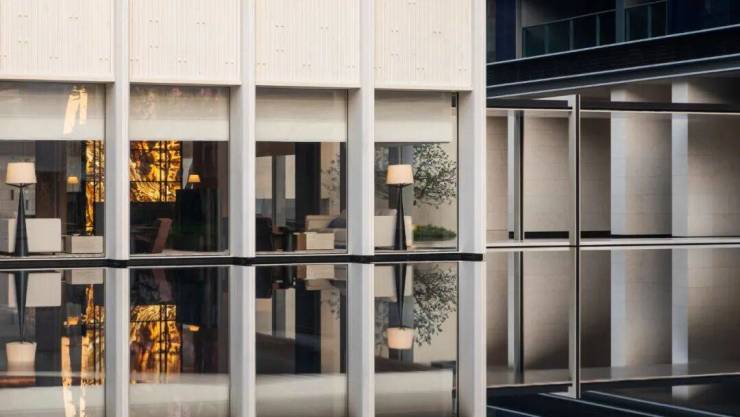 安璞的建筑设计由goa大象操刀,高层外立面以中式对称为基础,横向延展的铝材线条与大面玻璃,让楼宇看起来毫无重量感,实则轻盈坚固,强调的是容量,而非体积。