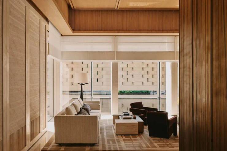 室内设计分别由MDO木君、CCD主笔,延续项目整体风格,以中性色调的木饰面、干净的线条、节制的装饰,塑造市中心大平层住宅的气度风华。