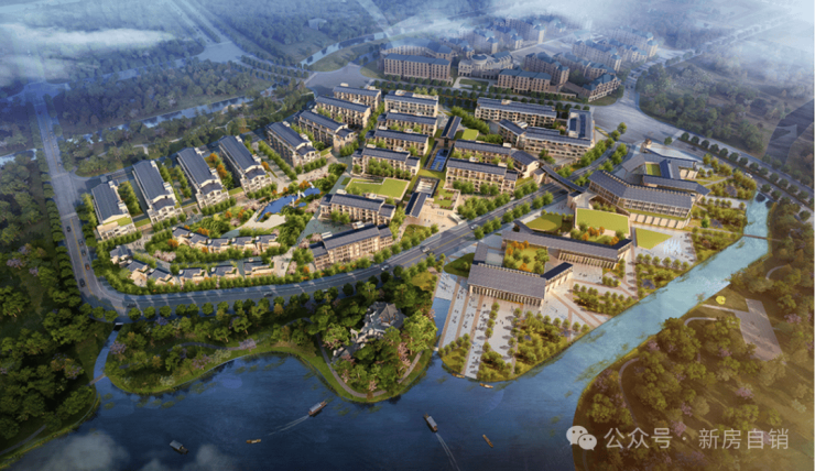 位置崇明岛陈家镇,东临东滩大道,西临颐湖路,北临河;项目总占地约92533.2 m²,地上建筑面积约79211.13 m²,容积率0.86,绿化率35.8%,车位配比:约1:1.6,由 529套房子组成,其中337套合院别墅(148m²合院175套,175m²合院162套),192套洋房。