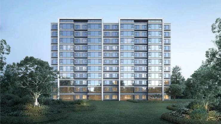 项目采用现代风格立面美学,撷取斐波那契的黄金比例,通过“宝顺号”船帆折线和塔冠造型的运用,搭配运用斜切铝板,配以大面玻璃和全封闭式阳台,呈现高窗墙比,营造高级的恒久质感。