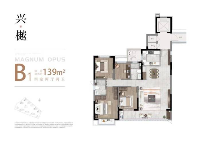 从空间到尺度,从功能性到舒适度,科学考究空间排布,匠心精筑建面约114-168㎡阔景高层/舒适洋房,严选国际知名品牌,缔造兴系封面人居作品。