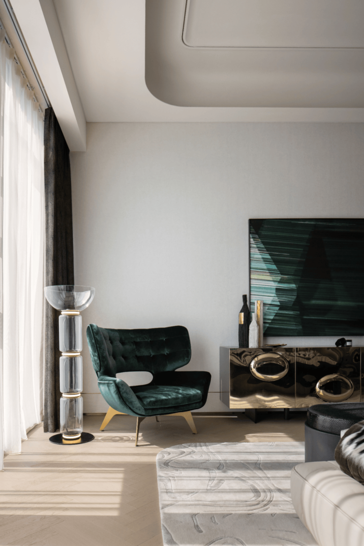 前湾·归源特聘请亚洲设计界领军人物、新装饰主义大师邱德光先生,于建面约370㎡大平层空间场域,设计「绿洲」概念作品。