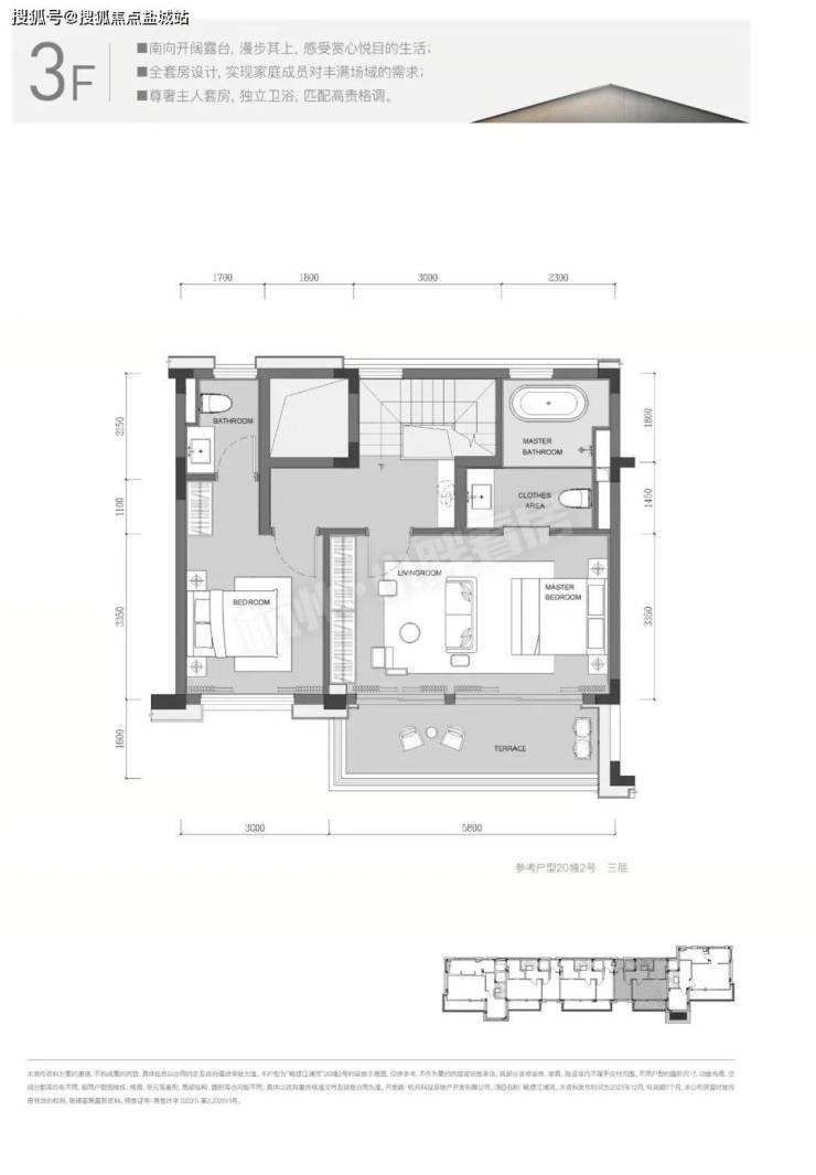 简单点评:一楼为公区,设计有厨房、餐客厅、阳台(带花园)、卫生间;二楼为双套房设计,且有公区、阳台等;三楼也是双套房设计,其中主卧异常豪华,带大阳台、卫生间带浴缸,是卫生间最多的户型。