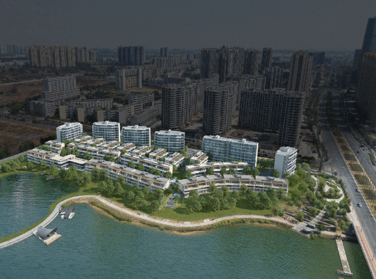 在二期项目设计过程中,全维度精准建模,计算每一个坡度,模拟每栋建筑观湖视角。