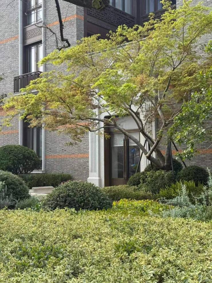 社区景观遵循“适地适树”原则,以广玉兰、乌桕等乡土树种为基调,搭配红果冬青、羽毛枫、鸡爪槭等特色植物,形成层次丰富的绿化体系。整体花园格式借鉴官邸化、庄园化设计,局部则营造精致松弛的角落花园,让自然与建筑和谐共生。