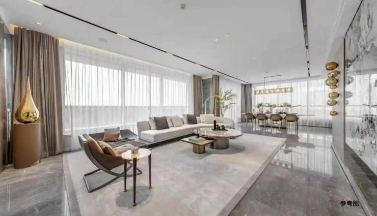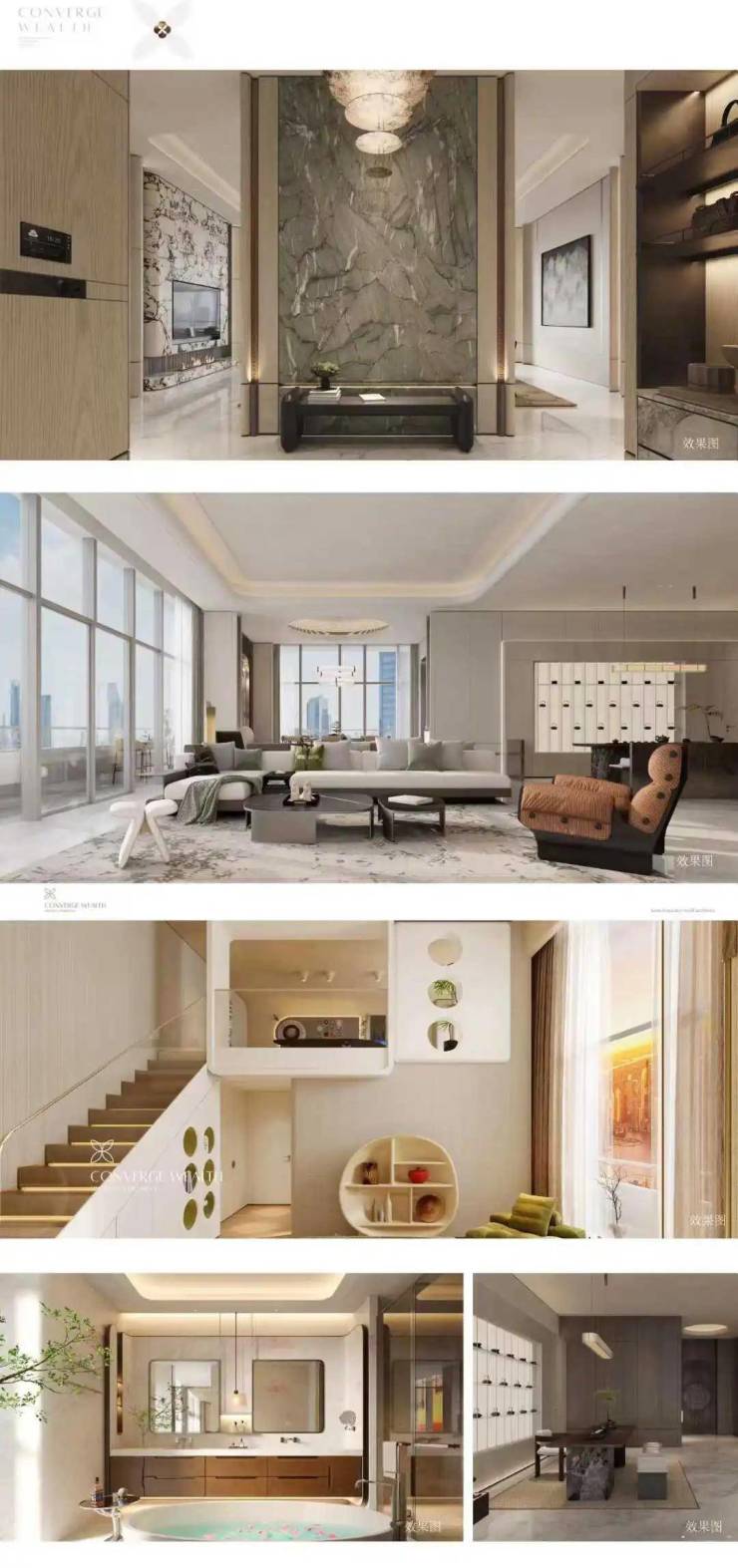 项目主打约4.75米层高创新户型,通过双层拓展实现“买360㎡得515㎡”的空间魔术。一层可规划客餐厅、长辈房及公共活动区,二层打造主人套房、儿童房及书房,部分户型带阳台设计,满足多代同堂居住需求。客餐厅采用无柱设计,空间划分更自由,玄关处近5米进口石材墙面可打造私人博物馆式展示区,一整面通高酒柜或“知识瀑布”书墙提升空间格调。