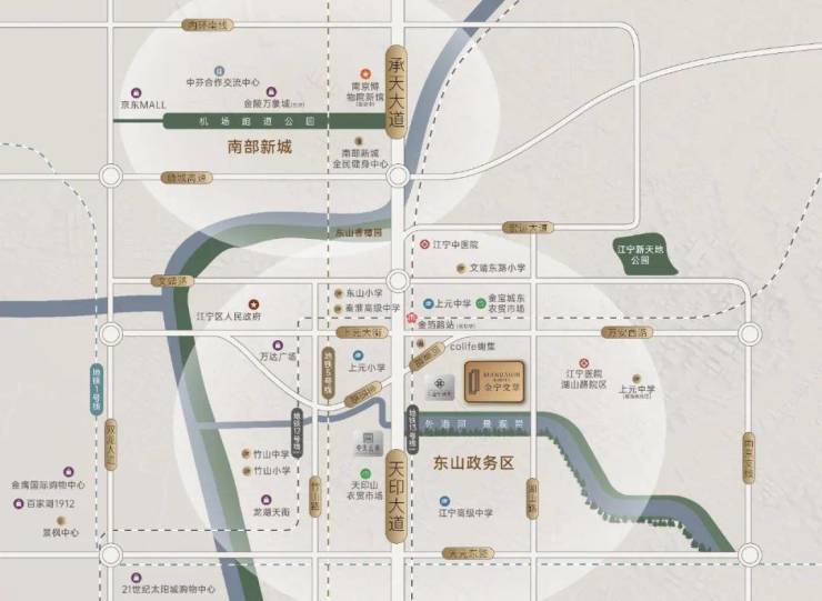 健康医疗:江宁医院湖山路院区、江宁中医院、南医大逸夫医院、江宁妇幼保健院等;