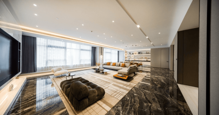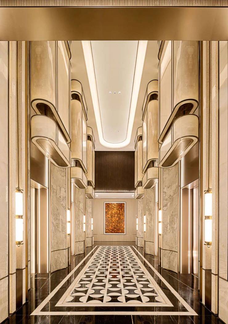 珍贵石材、名贵木料、定制金属,国际一线品牌,匠心雕琢臻于至善,汇聚全球高端品质,为业主献上“私人订制化”的理想生活,营造穿越未来的经典审美品位。地下大堂同样低调奢华,从地面墙面的铺装,到顶部对称造型的吊顶,世纪国泰中心在细节上毫不敷衍,让宾至如归的仪式感,贯穿所有的归家动线。