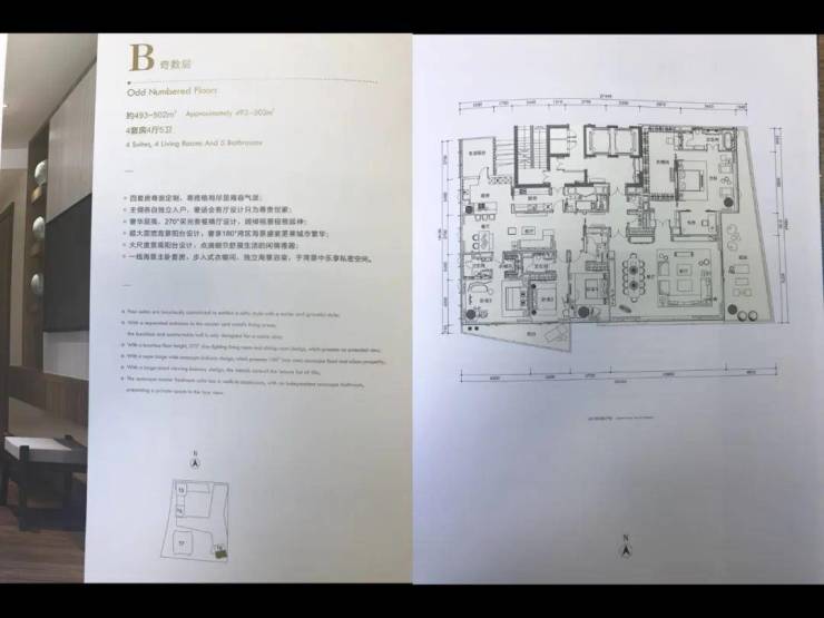 A 户型:3 套房 2 厅 4 卫 1 书房