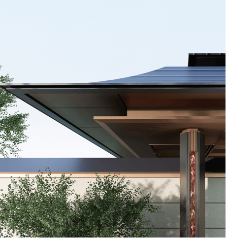 承袭越秀42载豪宅营造的深厚积淀,越秀・观锦宸樾府取意古代建筑精粹与吴越隽永符号,将庑殿顶这一古代至高建筑规制,连同飞檐翘角、雕花窗棂等华贵意象,经现代精工技法,转译为契合当代审美的建筑语言,构筑起一座承古启新的风雅大境。