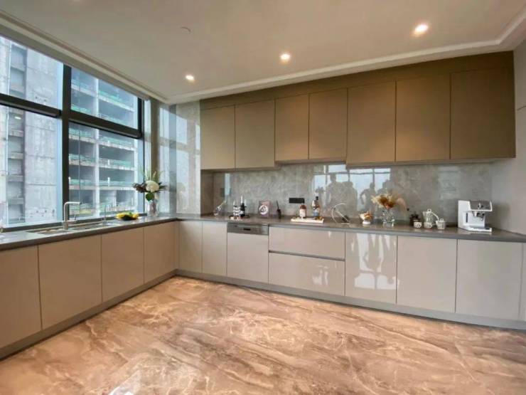 于是,站在之江门样板房的落地窗前,开阔的江景一览无余。整个窗景像是一幅超级巨幕,上演着钱塘江上的潮起潮落,日月更替。横扫整个瞰江视角,一边是绵延的西湖群山,另一边是之江大桥的车水马龙,对面就是“国际滨”林立的高楼,山水风姿与城市繁华尽收眼底