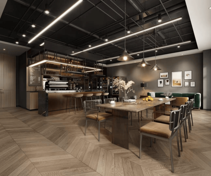 其中最大的特色,在每层设有功能区域,例如健身房,瑜伽室,早餐烘焙,自助迷你咖啡吧,儿童活动室,空中花园等等一系列的设施配套。