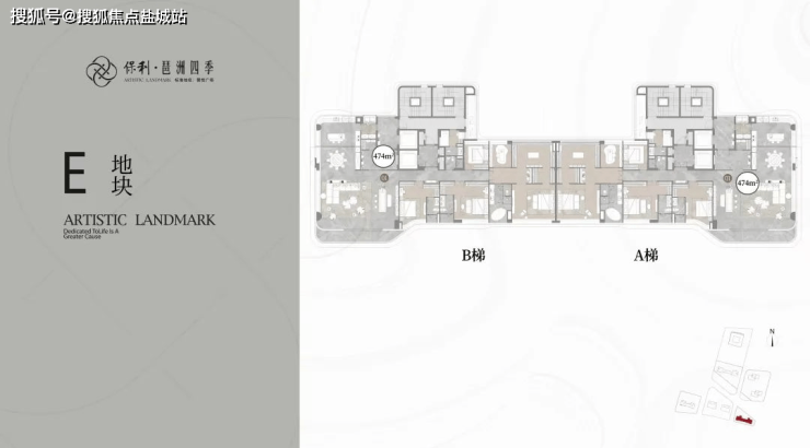 保利琶洲四季推出E地块的压轴楼王,E栋楼王8层小高层的滨水大平层,整栋楼每一层的层高3.8米,其中2-7F为474㎡的4+1房五卫大平层,8F则是稀缺的顶层复式产品,一层两户仅有14套单位可售