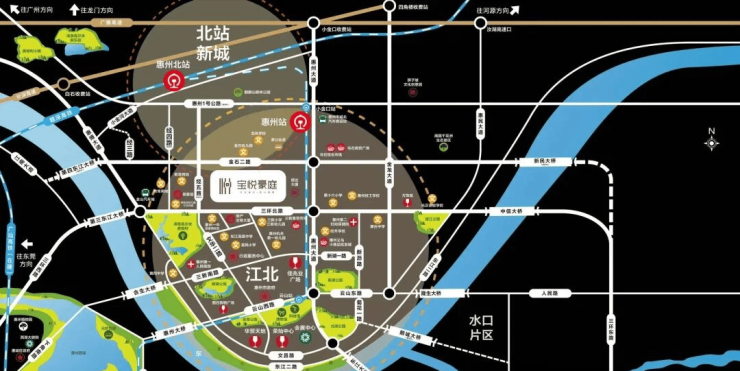宝悦豪庭位于江北CBD西区与惠州北站门户要地,战略地位凸显,尽享CBD千亿级都市公共资源,坐享北站新城配套与发展红利。随着江北中心区CBD总部经济的快速发展,结合城市南拓北进的发展战略,未来江北的发展,将由中心区向北扩张和辐射,项目所在区域未来价值不可估量。