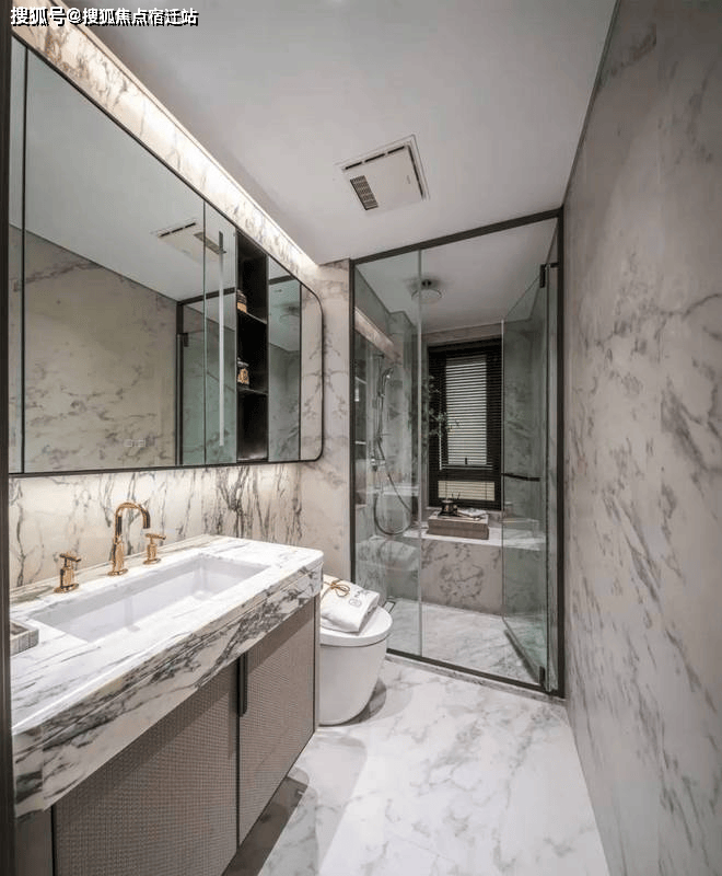 而在卫生间中,招商臻境运用了高仪、唯宝等高端品牌,另外超大镜面柜内配置了充电口,方便剃须刀、电动牙刷等工具收纳。