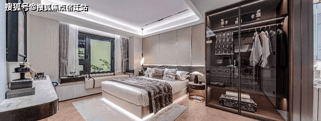 建面约103㎡的3房在建面约89㎡的3房基础上做了进阶,主卧升级成为了套间设计,不仅配置了独立卫生间,还有独立换衣空间。