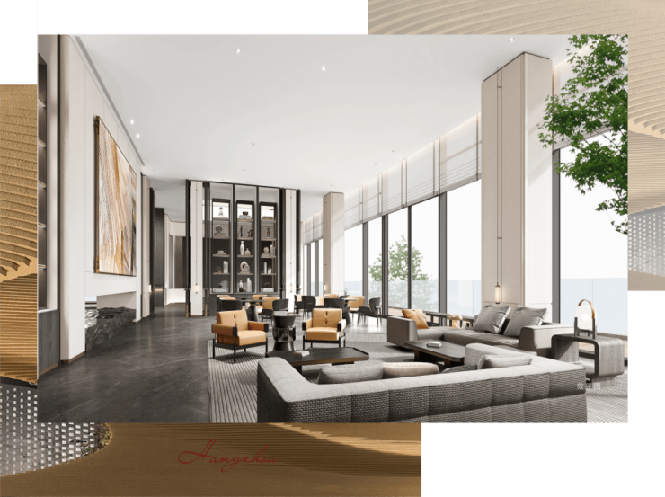 更难想象的是,在当前杭州大平层产品趋同的背景之下,中南·江一云境,不惜重金首创三层奢装入户大堂。地库大堂可以做到奢装入户、三重空间营造,地面奢石和地下挑高空间造景,每一重皆是奢华的礼序!