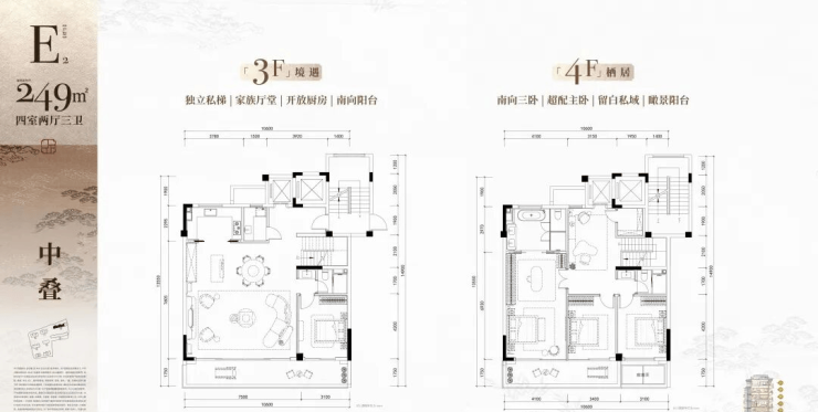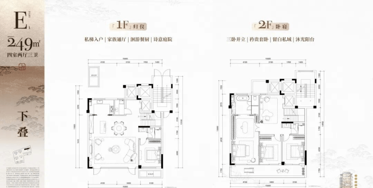 下叠以“花园入户”开启尊崇生活序章,推门即入的私家庭院,植松引枫,莳花弄草,与自然无融合;全明采光地下室,室内外无界互动,消弭封闭感;大面宽巨厅、阔绰阳台、超配主卧等空间设计,既安放热闹烟火,亦承载宁静诗意。